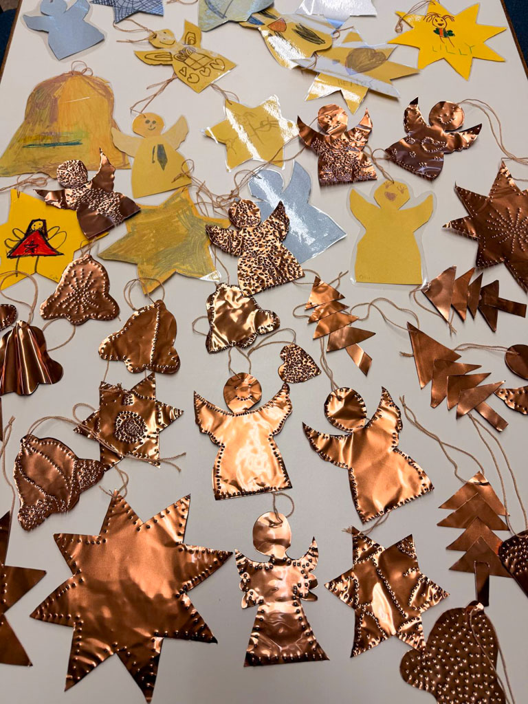 Weihnachtsbaum mit selbst gebastelten Kugeln