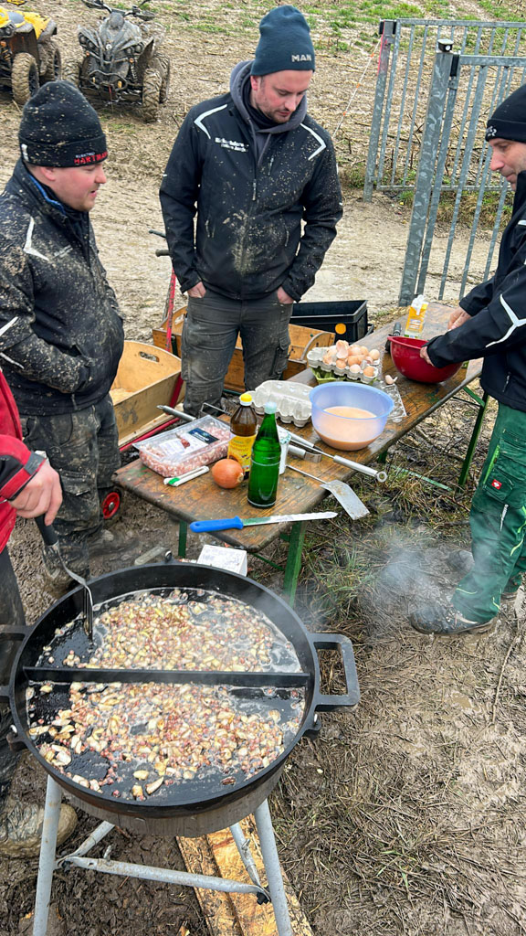 Damit keiner verhungerte, wurden am Samstag und Sonntag Eier gebacken, es gab Bratkartoffeln, Bratwurst, Schwenkbraten und leckeren Spießbraten.