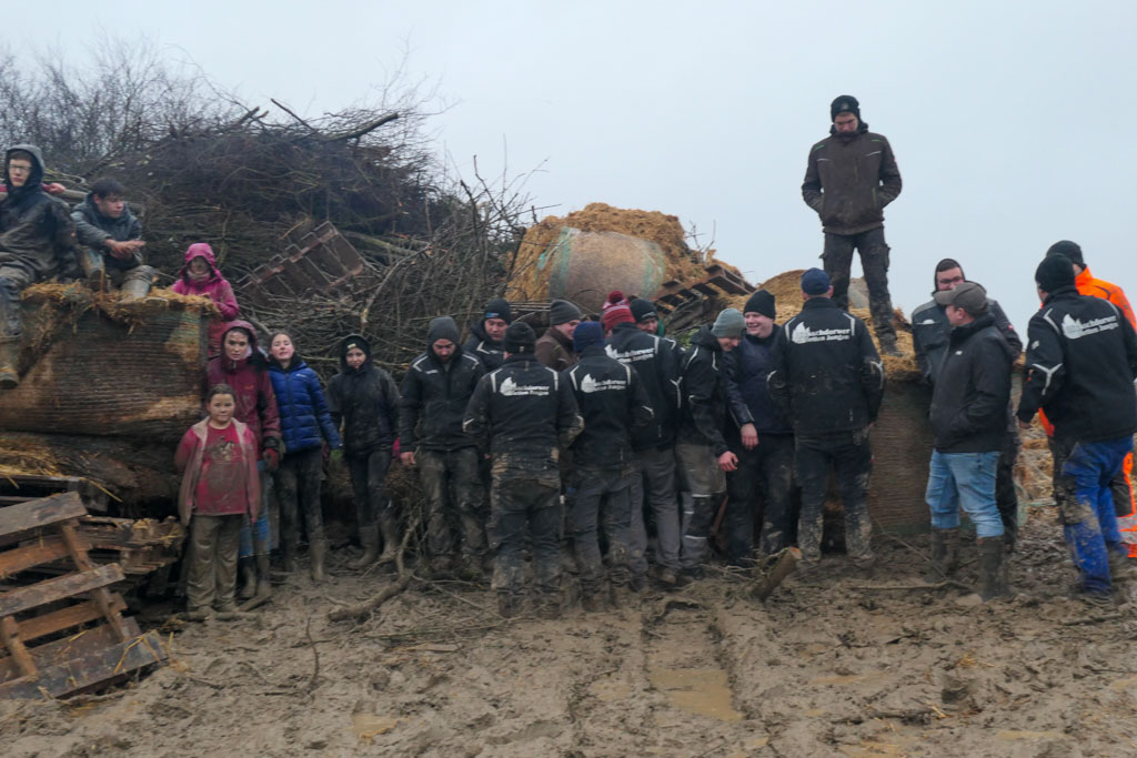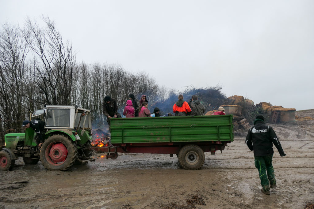 Start der Vorbereitungen war samstags ab 09:00 Uhr. Im ganzen Dorf wurde geeignetes Brennmaterial eingesammelt, dazu zählen auch die ausgedienten Weihnachtsbäume.