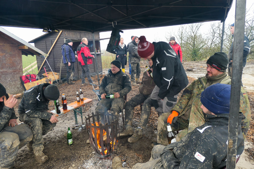 Dann kam der wahrscheinlich spannendste Teil des Wochenendes, bei strömenden Regen, das Anzünden des Hüttenfeuers.