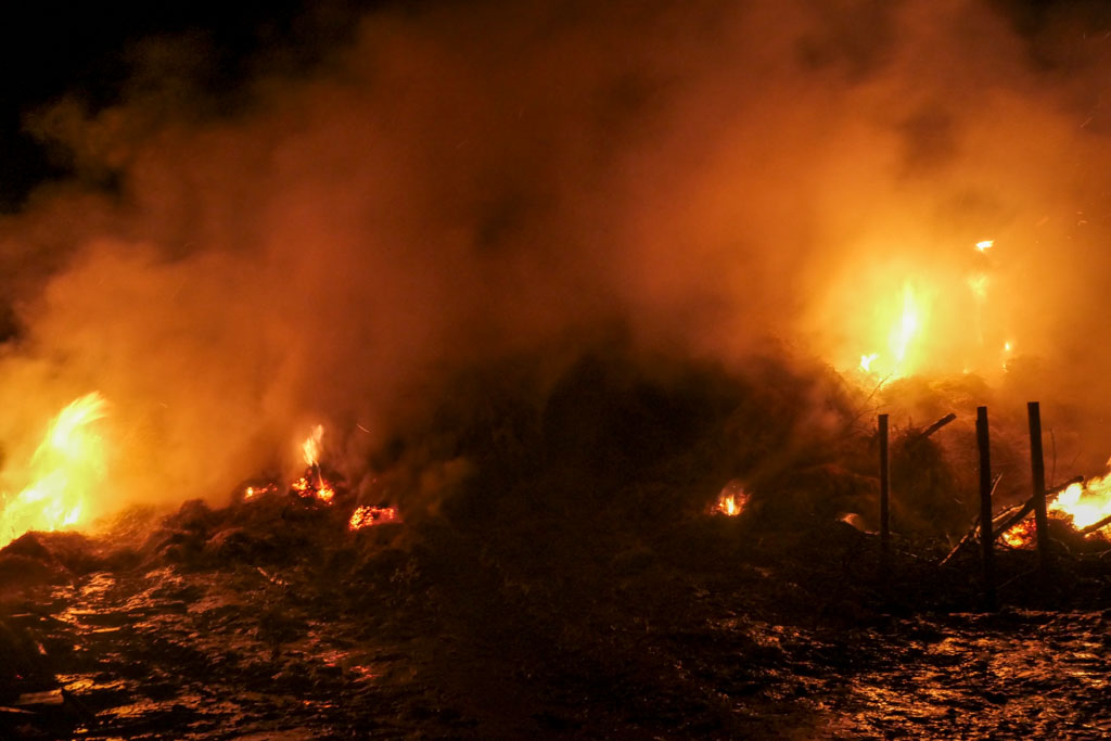 Das gesammelte Brennmaterial wurde an gewohnter Stelle zu einem großen Haufen aufgeschichtet.