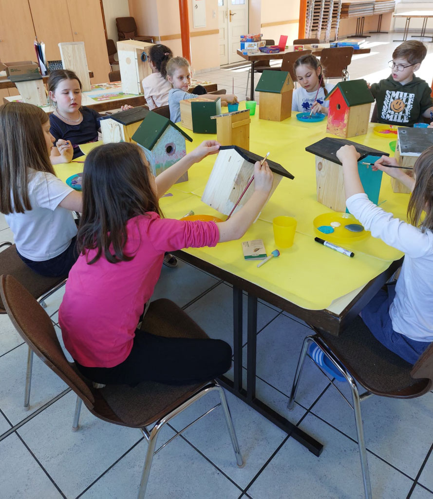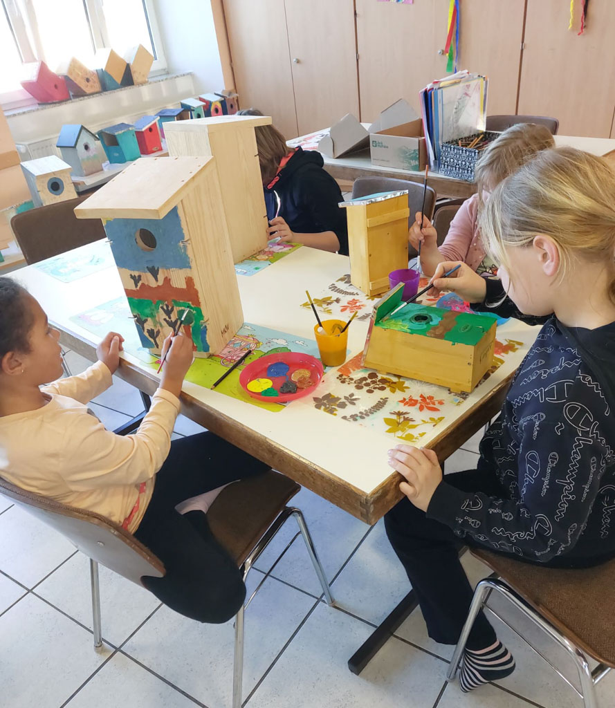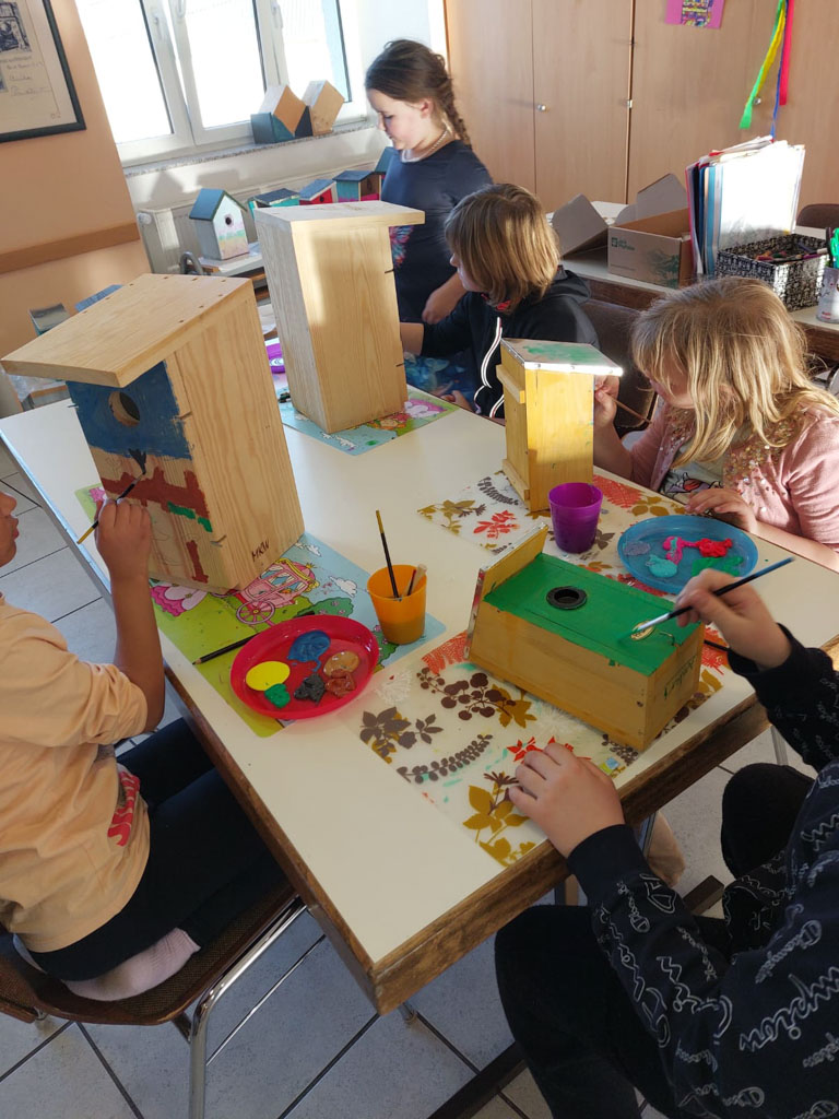 Heute durften wir Nistkästen in verschiedenen Größen und Ausführungen bemalen.