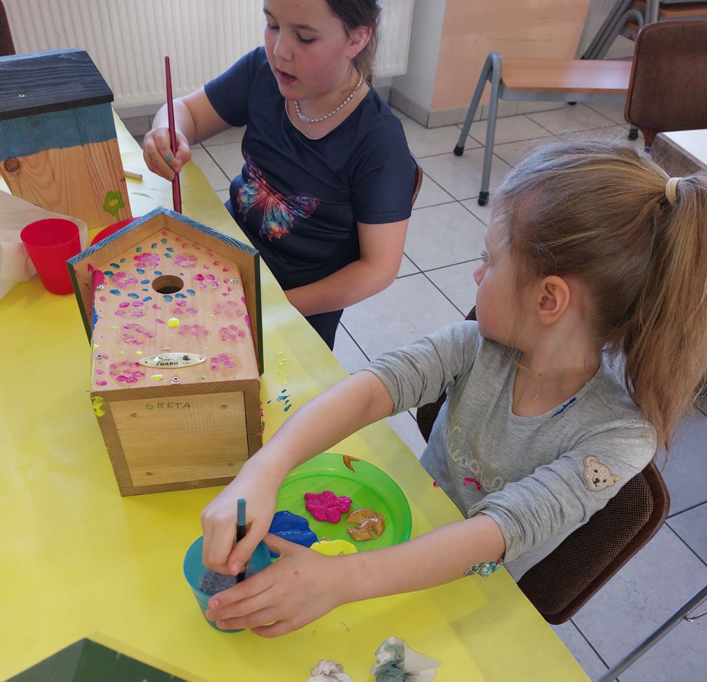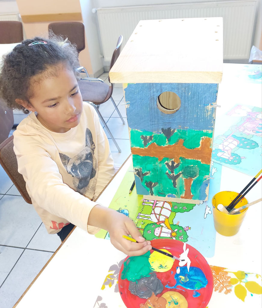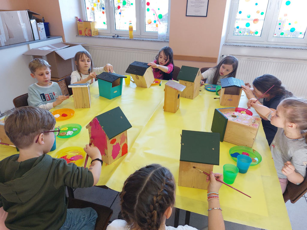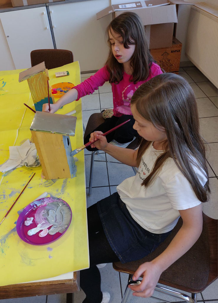 Es sind so tolle Kunstwerke auf den Kästen entstanden, dass die Vögel beim Einzug sicher staunen werden. Einige Kinder waren heute zum ersten Mal im Kindertreff und hatten sofort Spaß an der kreativen Arbeit. Am Spieletisch war auch wie immer einiges los.