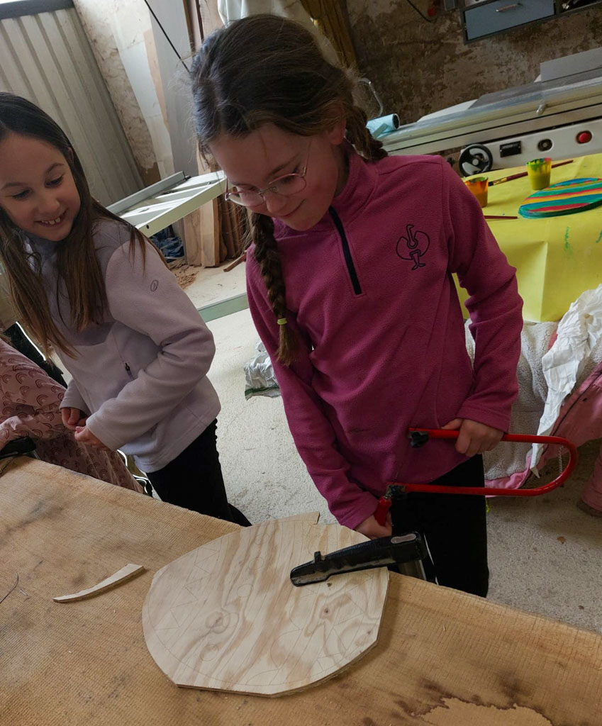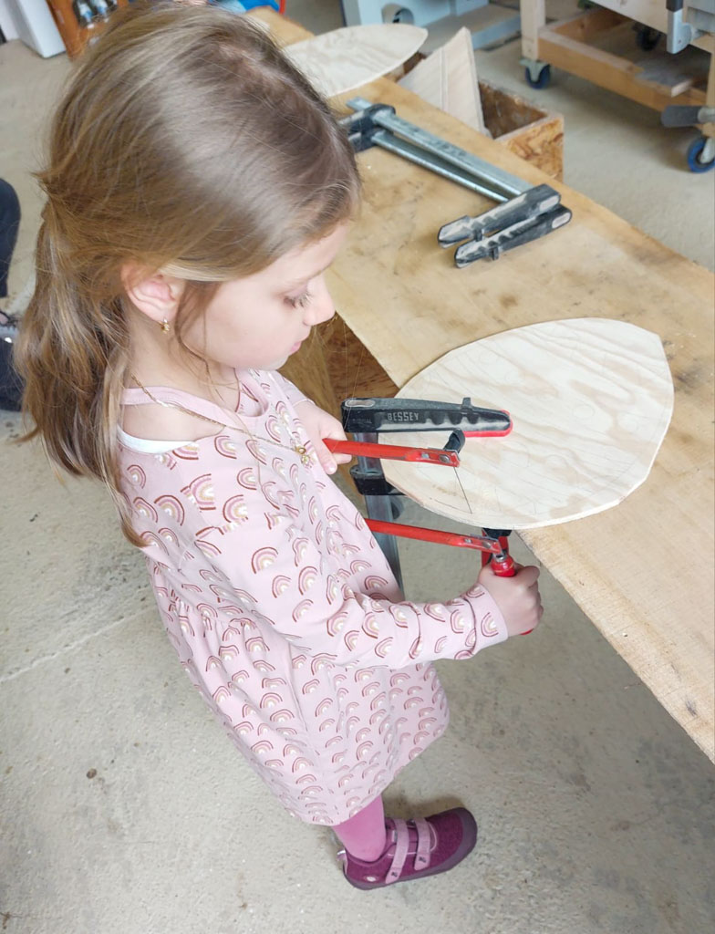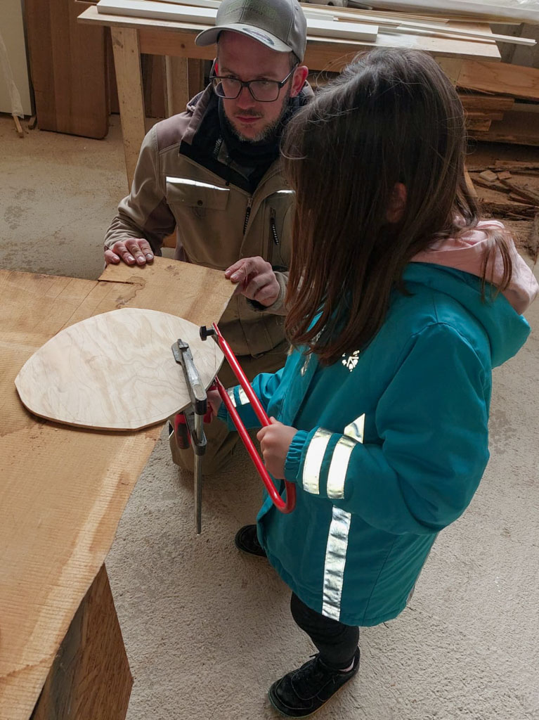 Es wurde gesägt, was das Zeug hält – der begeisterten Arbeitskraft sind dabei einige Sägeblätter zum Opfer gefallen. Die ausgesägten Holzeier wurden anschließend fleißig an einem großen Tisch bemalt.