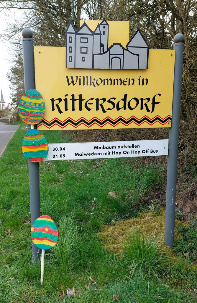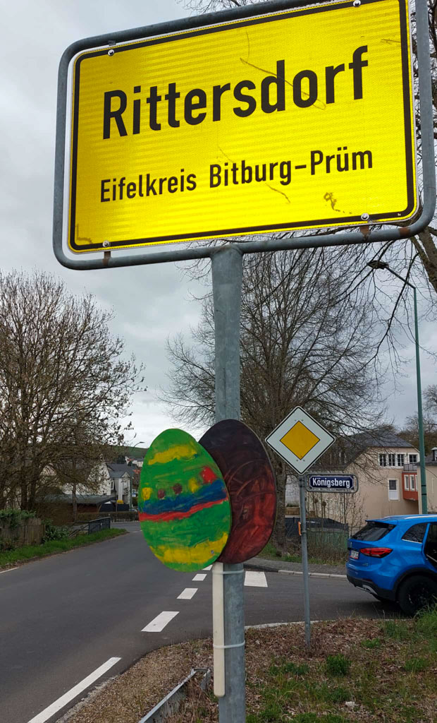 Wenn sie lackiert sind, werden die Holzostereier an den Ortsschildern zu finden sein.